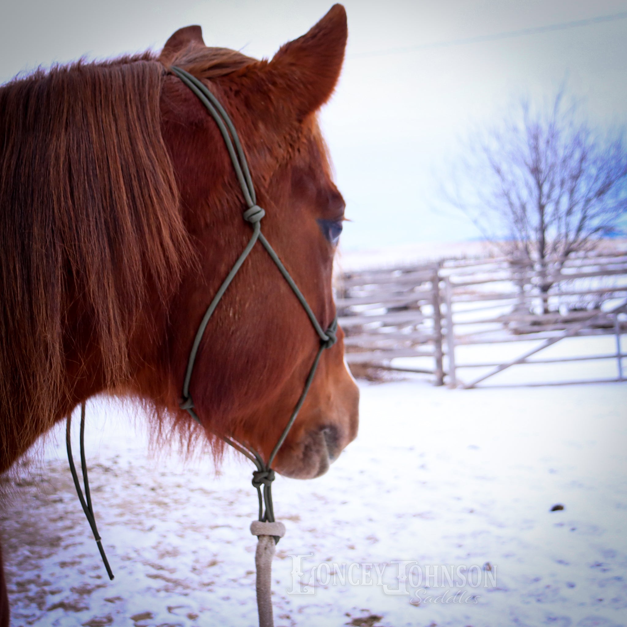 Hand tied by Eric Johnson who has a life time of ranch work and horse training experience which has taught him what a durable and correct fitting halter means.