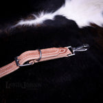 This harness leather training fork features a heavy stainless steel snap for easy attachment to your front cinch. Made with 1" stainless steel rings, and adjusts from 3' -3' 1/2" in length.