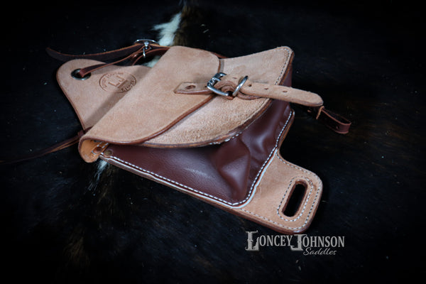 Securely carry your medication on horseback with our Left Side Doctoring Bag. Made with roughout leather and a sturdy center divider, this single side bag ensures your meds stay in place.. Say goodbye to bouncing bags and hello to a comfortable ride.