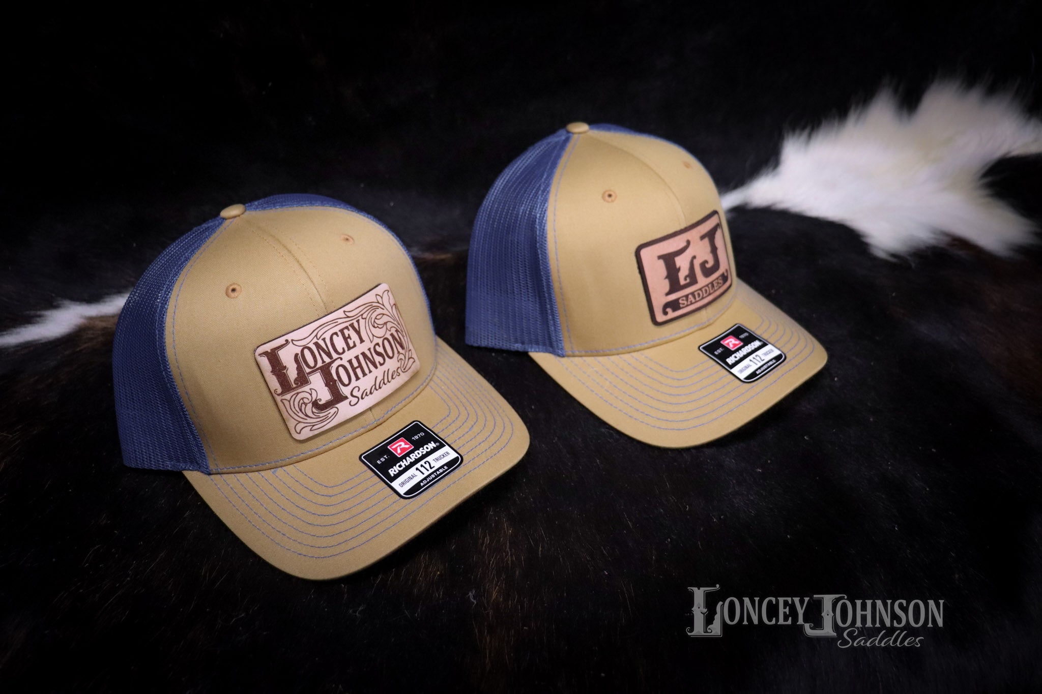 This is one of the sharpest color combinations we have had with our Loncey Johnson Saddles leather patch on a Richardson 112 cap in Gold and Blue!