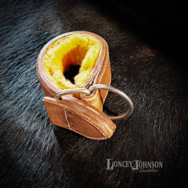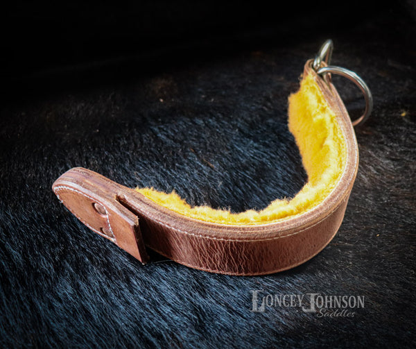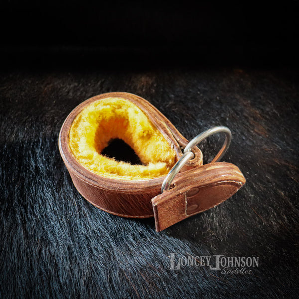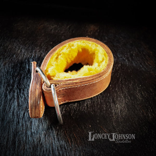 This single leg hobble is crafted from durable harness leather and lined with soft sheepskin for enhanced comfort during use. Designed without a buckle closure, it provides a secure and reliable restraint while minimizing pressure points. Ideal for professional applications requiring durable and comfortable leg control.
